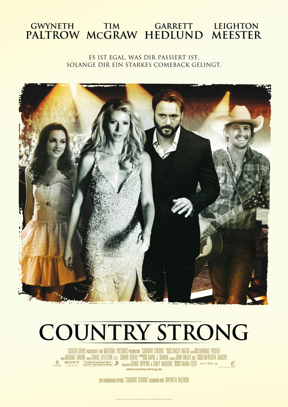 Gwyneth Paltrow als Country-Star? Zu sehen ist der britische Hollywood-Star in dem Musikdrama „County Strong“, das wegen der Musik immerhin für zwei Oscars nominiert ist. Voraussichtlich Anfang Juni 2011 bringt Sony Pictures den Film auch in deutsche Kinos. Hier ist bis dahin der deutsche Trailer.