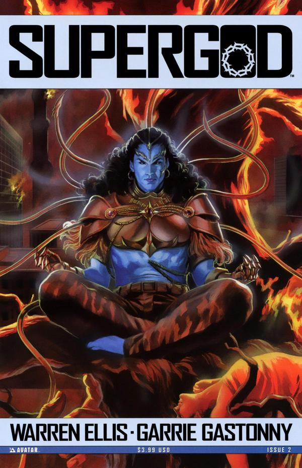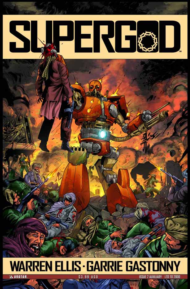 „Supergod“ aus der Feder von Warren Ellis, der ja selbst eine Comic-Legende ist, ist sehr gesellschaftskritisch ausgefallen. Die Erzählperspektive ist gewöhnungsbedürftig und überzeugt nicht durchgehend. Im Stil eines Superhelden-Comics hinterfragt die Geschichte vom ultimativen Kampf der Überwesen unsere Technikgläubigkeit und das absurde Verlangen nach Schutz durch bessere Waffen. Getreu dem Zauberlehrlingsmotto: „Die ich rief, die Geister, werd ich nun nicht los.“