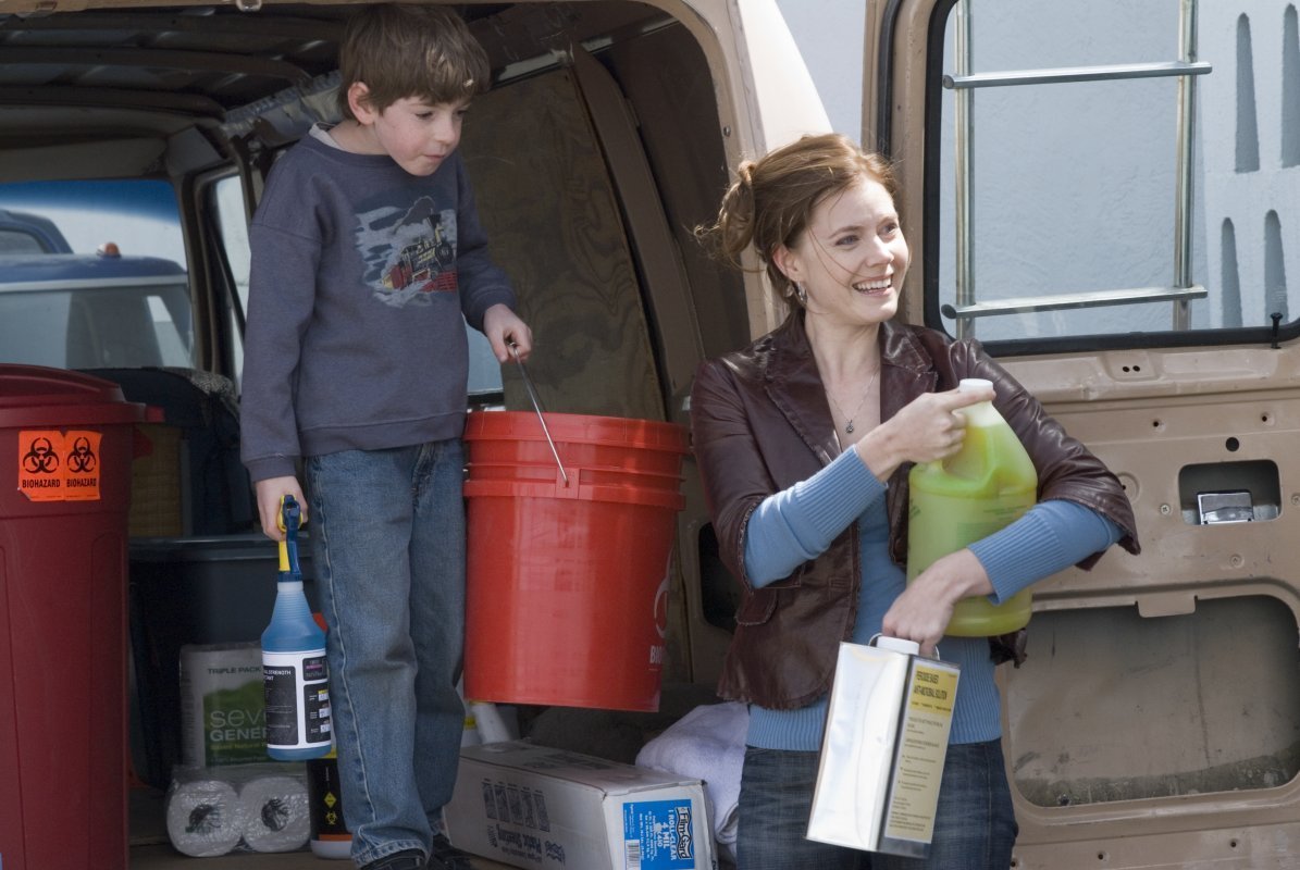 Dabei ist „Sunshine Cleaning“ alles andere als eine Screwball-Comedy. Die Story von Rose, die zwar in der Schule die Cheerleading-Queen war und mit dem Quarterback des Footballteams eine verheißungsvolle Zukunft in Aussicht hatte, räumt solide mit dem amerikanischen Kleinstadt-Idyll auf. Für den inzwischen anderweitig verheirateten Ex-Quarterback ist sie nur noch eine Affäre. Und als unqualifizierte Reinigungskraft, hat sie auch noch einen unehelichen Sohn großzuziehen. Immerhin bringt der Cop Mac, ebenjener besagte Schulsportler, Rose auf die Idee, eine eigene Firma aufzumachen: Tatortreinigung.