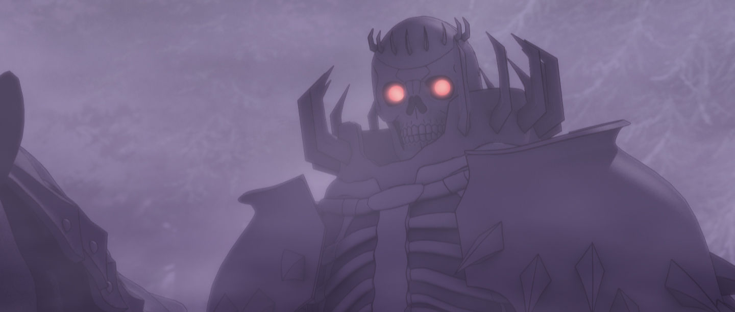 Wow, was für ein Finale! Waren die beiden Vorgängerfilme jeweils rund 80 Minuten lang, bringt es „Berserk – Das Goldene Zeitalter 3“ auf rund 110 Minuten Spielzeit, von denen die Ereignisse in der realen Welt etwa 20 Minuten einnehmen, die restlichen 90 Minuten sind in dunkelviolette Farbspiele getaucht und bieten neben brutalen, dämonischen Actionsequenzen einen ganzen Kübel psychedelischer Einsprengsel. Man ist fast versucht, das Ganze als eigenständiges Spektakel zu sehen, das mit der „Schwert und Ritter“-Saga kaum etwas zu tun hat. Hier kommen ganz andere Elemente der Dark Fantasy zum Zug: Lovecraftscher Horror, Poe’sche Psychedelik und ein Figurenuniversum, das einem H.R. Giger alle Ehre machen würde, während sich Guts über Ebenen von Totenschädeln seinen Weg gegen die Dämonen bahnt, um Griffith zu retten. Der allerdings überhaupt nicht gerettet werden will.