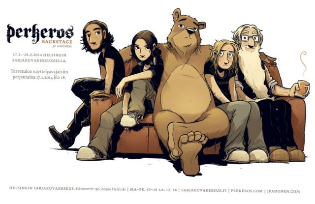 Seit 2006 denken die beiden Finnen JP Ahonen und KP Alare über ihr Projekt „Perkeros“ nach und was lange währt, wird endlich gut. Das wunderbare an der Graphic Novel ist, dass man sie auf unterschiedliche Weisen lesen kann: Die Story funktioniert als Bandgeschichte einer Heavy Metal Band ebenso gut wie als Beziehungskiste oder als persönliche Entwicklungsgeschichte von Akseli. Das Ganze wird dann ausgesprochen stimmig, aber ohne aufgesetzt zu wirken, noch mit ein wenig Mythologie und Gruselmomenten aufgepeppt, wie das textlich im Heavy Metal Genre häufig geschieht. Dabei kommt auch der Witz nicht zu kurz, und die Besetzung des Drummers mit einem Bären darf durchaus als Hommage an Animal aus der Muppet-Show verstanden werden. Außerdem besagt das Rockklischee ja auch, dass alle Schlagzeuger Tiere sind (zumindest in der Selbstwahrnehmung), so wie alle Fußballtorhüter ein bisschen durchgeknallt sein sollen.