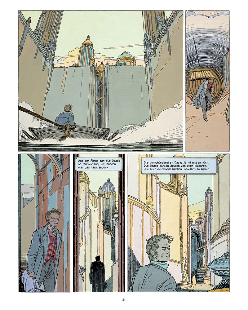Der erste Band der „Geheimnisvollen Städte“ von Schuiten und Peeters zeigt, wohin die Reise geht. Den Zenit ihrer Kunst haben die beiden seinerzeit noch nicht erreicht, aber eine faszinierende Geschichte bleibt „Die Mauern von Samaris“. Die erstmals zusammengetragene „Geheimnisse von Pahry“ bereichern den Band um spielerisch faszinierende Episoden.