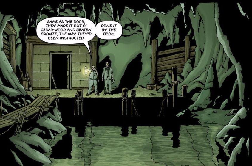 Aber zurück zu „Providence“: Moore und auch Burrows arbeiten sehr geschickt mit Versatzstücken und Anspielungen aus Lovecrafts Werk und Leben. Man muss das nicht kennen, um die eigenständige Story, die keineswegs nur eine Adaption ist, zu genießen, aber es steigert den Lesespaß ungemein. Und gerade diese Metaebene hat „Providence“, zumindest in den vier US-Ausgaben des ersten deutschen Sammelbandes, mit „Watchmen“ gemein. Moore denkt ein Genre auch gerne auf einer Metaebene mit und baut hier geschickt einige Twists und Irritationen ein. Mehr zu verraten, wäre an dieser Stelle fahrlässiges Spoilern.