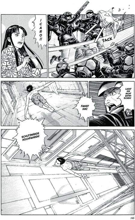 Über 12 Szenen und rund 300 Seiten entwickelt der japanische Mangaka Jiro Tainiguchi die Geschichte des fliegenden Jungen zu einer recht typischen, eher einfachen Sci-Fi-Geschichte, die im Nachhinein gelesen einige Parallelen zu Katsuhiro Otomos großem Sci-Fi-Opus „Akira“ aufweist. Dennoch hat die Geschichte ihren ganz eigenen Drive, was vor allem an Taniguchis Stil und Erzählweise liegt, die sich auch an Moebius selbst orientiert.