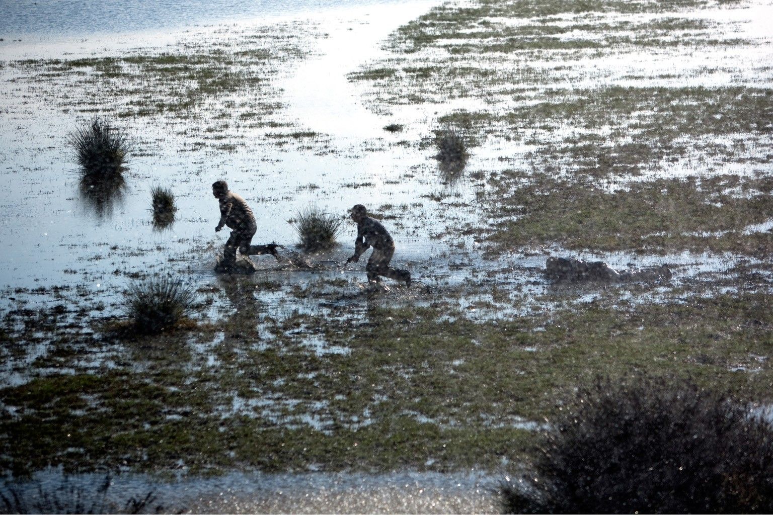 Der Vorspann wirkt, als hatte da jemand am Computer bizarre und krause Linien gezogen, nur um zu sehen, was für Muster entstehen. Doch nachdem die ersten Vögel durchs Bild gezogen sind und die Luftaufnahme der verästelten Landschaft des südandalusischen Flusses Guadalquivir nicht mehr an die freigelegten Windungen eines Gehirns erinnern, stehen da unmotiviert zweit Typen in der Gegend herum und warten.