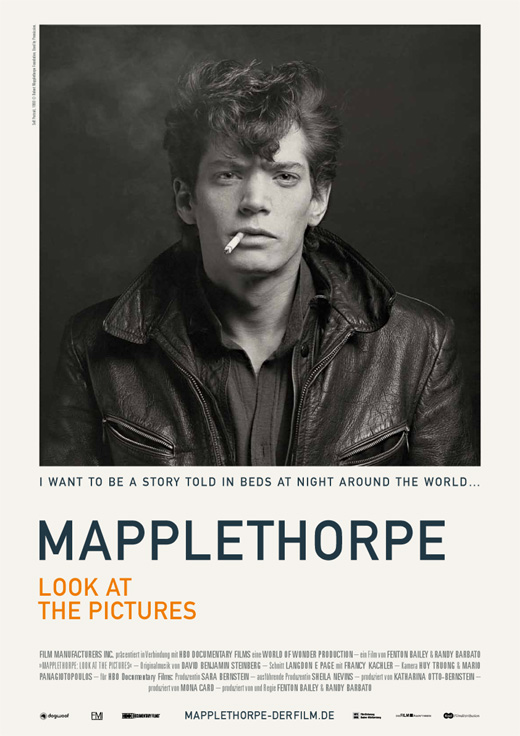 Im Grunde arbeiten die beiden Regisseure Fenton Bailey und Randy Barbato ihre biografische Künstlerdoku chronologisch ab und nähern sich so auch dem Werdegang des späteren Ausnahmefotografen. Allerdings versehen die Regisseure die Doku mit einer erzählerischen Klammer, die das Skandalträchtige in Robert Mapplethorpes Kunst betont. Anlässlich einer zu Lebzeiten des Künstlers geplanten Ausstellung, empörte sich der republikanische US-Senator Jesse Helms über die Anzüglichkeit der Fotomotive und forderte in einer Rede, die Zurschaustellung zu verbieten. Daher der Titel der Doku: „Look at the Pictures“.