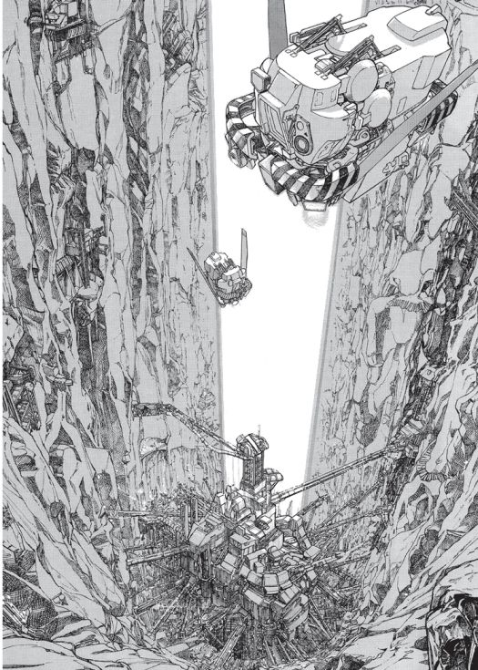Mangaka Taniguchi nimmt sich Zeit, seine Story zu entwickeln und die ersten der neun Kapitel des ersten Bandes der „Ice Age Chronicle of The Earth“ sind vor allem dazu angetan, das Setting zu etablieren. Einerseits die harsche und unwirtliche Landschaft, andererseits den unterirdischen, von Technik und Maschinen geprägten Arbeitsalltag. Die Panels und Sequenzen sind in ihren Grauschattierungen voller Details und von erstaunlicher Dynamik, auf die Zeichner Taniguchi eindeutig den meisten Aufwand legt.