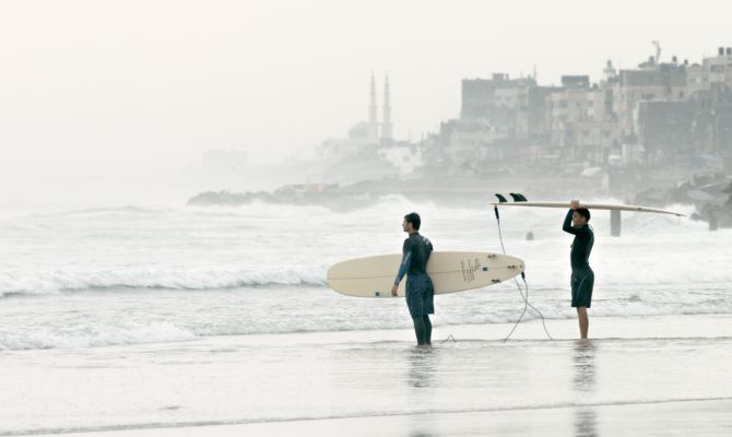 Über das Leben in Palästina ist hierzulande eigentlich kaum etwas bekannt. Das Thema taucht nur in den Nachrichten auf, wenn beispielsweise gerade der palästinensische Präsident Mahmud Abbas bei Kanzlerin Merkel zu Gast ist und für eine Zweistaatenlösung wirbt. Aber auch dann geht es nicht um die Menschen in Palästina. Mit „Junktion 48“ war vor kurzem schon ein Spielfilm über einen palästinensischen Rapper in den deutschen Kinos zu sehen. Nun beleuchtet ein Dokumentarfilm den Surf Spot Gaza. Hört sich absonderlich an und ist es auch, aber ein paar Wellenreiter gibt es auch dort.