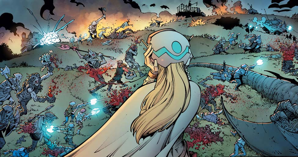 Zeichner Greg Capullo („Spawn: Violator“), selbst eine gestandenen Größe im Comic-Geschäft, sorgt in den sieben US-Ausgaben, die „Reborn“ umfasst dafür, dass Millars wendungsreiche Geschichte auch angemessen bebildert wird. Die Farbgebung von FCO Plascencia sorgt für die richtige Atmosphäre und gut unterscheidbare Settings und Handlungsorte. Dnn Capullos Zeichnungen sind bisweilen ganz schön düster ausgefallen, gerade wenn es in das Reich des bösen Herrschers geht. Aber ohne schaurigen und ernstzunehmenden Widersacher kann auch die Heldin nicht über sich hinauswachsen.