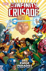 Unterm Strich ist „The Infinity Crusade – Das Ewige Paradies“ ein würdiger Abschluss der Infinity-Trilogie, die Autor Jim Starlin und Zeichner Ron Lim in den 1990ern auf die Leser losgelassen haben. Zwar reicht es eigentlich den ersten (und besten Teil) zu kennen, in dem Thanos aus Liebesgründen den „Infinity Gauntlet“ an sich bringt, aber wer ein Faible für konsequent versponnenen Space-Operas und philosophische Experimente hat, wird an „The Infinity Crusade“ – Das ewige Paradies“ sicher seine Freunde und seinen Lesespaß haben.
