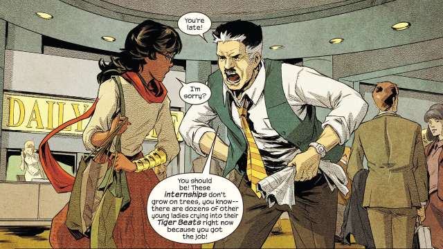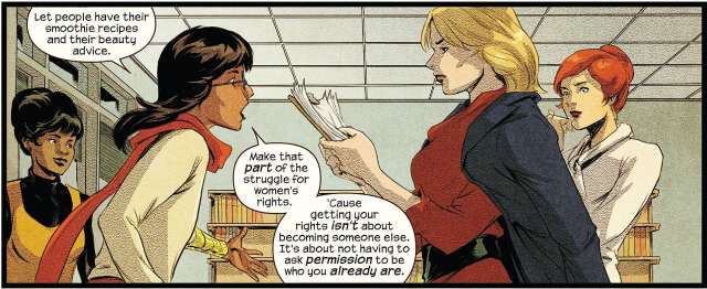 G.Willow Wilson, die als Autorin die „neue“ und muslimische Ms. Marvel in das Superheldenuniversum bei Marvel eingeführt hat, betreut auch das Treffen von Khamala und Carol Danvers in deren Vergangenheit, „Die Marvels“. Zeichner Paolo Villanelli und Kolorist Ian Herring bleiben dem Stil der neuen „Ms.Marvel“-Serie treu, legen aber einen ockerfarbenen Retro-Charme auf ihre Version der Phase als Carol Danvers bei Daily Bugle ein Frauenmagazin betreute. Khamala findet sich hier als Praktikantin wieder und eine Superschurkin gibt es natürlich auch. Die Geschichte ist witzig und hat auch einen emanzipatorischen Frauenpower Aspekt wie man das von G. Willow Wilson gewohnt ist.
