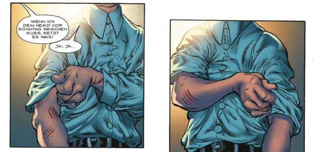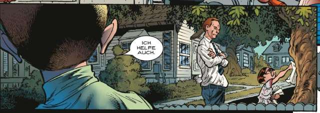 McFarlanes Stil in den 1990ern war wie bei vielen seiner zeichnenden Kollegen geprägt von überbordenden Muskelpaketen und Figuren und Charakteren, die sehr körperbetont rüberkamen. Nicht nur die bepackten Kerle, auch die Damen mit üppiger Oberweite sind so typisch für die Neunzigerjahre-Superheldencomics. Medinas „Venom – Dark Origin“ hat sich illustratorisch von diesen Exzessen gelöst, aber die Elemente sind immer noch stilprägend und in dem Maße wie sie in dieser Mini-Serie eingesetzt sind extrem dynamisch. Dazu kommt eine sehr variable Seitengestaltung und tolle Perspektiven. So dass „Venom: Dark Origin“ schon alleine deshalb wirklich Spaß macht.