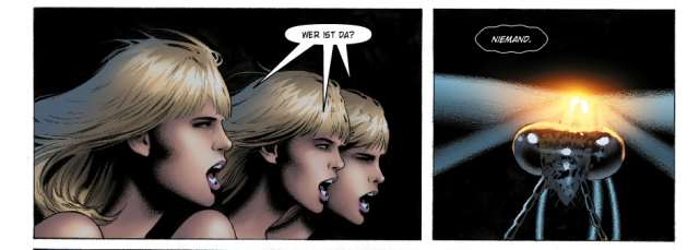 Gleiches gilt für die Stepford Kuckucke und Quentin Quire alias „Kid Omega“, der in beiden Geschichten eine tragende Rolle spielt. Doch hat man sich in die Geschichten erst einmal eingelesen, dann macht das absurde Spiel mit Bewusstsein und Energiezuständen auf nerdige Art und Weise auch Spaß.