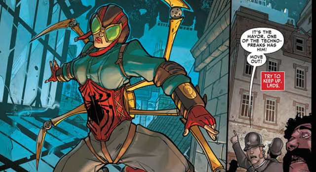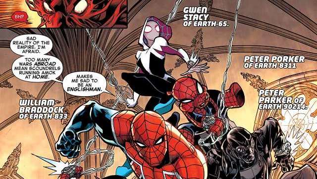 Comic-Autor Dan Slott hat 2014 in der Spider-Man-Serie die Grundlagen dafür gelegt, dass sich all die unterschiedlichen Spinnenhelden einmal treffen und in einen gigantischen Team-Up zusammen kämpfen müssen. Gerade zu Beginn der Handlung ist es etwas verwirrend dabei den Überblick zu behalten. Viele Der Spider-Men Kostüme sehen sich recht ähnlich und man muss schon genau hingucken, um die Kollegen da alle auseinander zu halten. Bei Spider-Gwen, Spider-Woman und dem Cartoon-Schweinchen ist das ja noch machbar, aber bei all den Peter Parkers wirds extrem konfus.