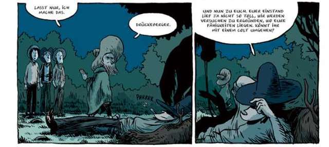 Was bereits am ersten Band von „Lincoln“ so erfrischend war, setzt sich im zweiten Abenteuer fort. Es ist bewundernswert, mit welcher Souveränität Szenarist Olivier Jouvray in dieser Familienproduktion (Bruder Bruder Jérôme zeichnet, dessen Ehefrau Anne-Claire koloriert) abstruse und unvorhersehbare Wendungen aus dem Hut zaubert. Ist es schon erstaunlich, dass ausgerechnet Gott mit dem Argument, dass sich der Fortschritt nicht aufhalten lasse, ein Auto kauft. So ist die Begegnung des Teufels mit der indianischen Geisterwelt und dem Schamanismus einfach hinreißend lächerlich. Mit dem zerknautschen Indianer „Der in den Wind spricht“ und Gott ist für Lincolns Seelenheil umfassend gesorgt. Am Ende entlässt die Geschichte die Leser wieder mit einem komplett offenen Ritt in den Sonnenuntergang.