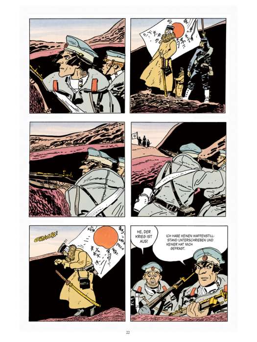 Noch ein paar Worte zur Kolorierung der „Corto Maltese“-Geschichten. Bereits in den 1980er Jahren, gründete Hugo Pratt die Firma „Cong Sa“, die alle seine Werke verwalten sollte. Bereits zu dieser Zeit arbetete Hugo Pratt mit der Künstlerin und Koloristin Patrizia Zanotti zusammen, die für die Farbgebung der „Corto Maltese“-Abenteuer verantwortlich ist. Man kann also davon ausgehen, dass der „Meister“ das Bunte der Bilder abgesegnet hat oder hätte. Ich für meinen Teil empfinde es als Bereicherung der großartigen Panels und Seiten. Bei nachkolorierten Schwarz-Weiß-Filmen liegt der Fall anders, dort regiert allzu häufig die Unnatürlichkeit der Farbgebung, wohingegen Patrizia Zanotti die Atmosphäre der Zeichnungen häufig kongenial unterstreicht.