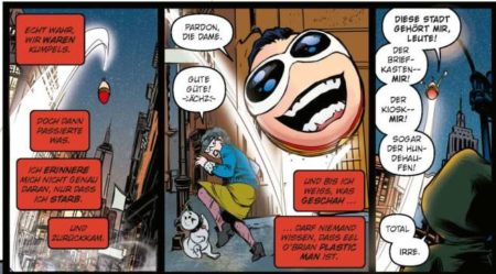 Als dann eine Agentin auftaucht und „Plastic Man“ für die Bekämpfung einer Superhelden-Verschwörung rekrutieren will, wird es verwirrend und vielleicht ist es gar keine so schlechte Idee mit Man-Bat, der menschlichen Fledermaus, ein team up zu versuchen. Allerdings hat auch noch Pado eine Überraschung zu bieten und sorgt bei dem leicht egoistischen Pat O’Brian für einen Anflug von Moral.