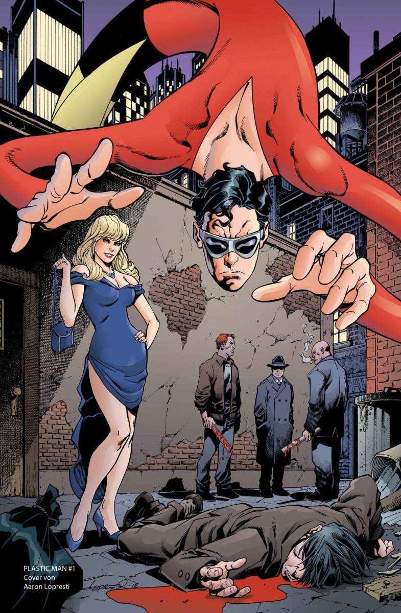 Ohne hier nun lange herumzuschwafeln, „Plastic Man“ wurde einst Anfang der 1940er von Zeichner und Autor Jack Cole als Satire auf die Superhelden entworfen, ging dann irgendwann in das DC Universum über und wurde immer mal wieder von Autoren.-und Zeichengrößen für abgedrehte Abendeuer hervorgekramt. Zeitweise war „Plastic Man“ auch in der Justice League“.