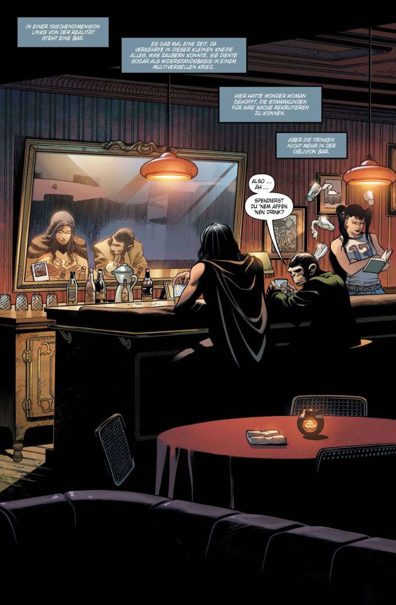 Wenn ein Bühnenzauberer seine Tricks nicht mehr unter Kontrolle hat, springt die attraktive Assistentin ein, um das Publikum abzulenken. Zatanna hat echte Zauberkräfte, aber aus unterschiedlichen Gründen funktionieren diese gerade nicht. Glücklicherweise ist Diana „Wonder Woman“ Prince gerade vor Ort, um nochmal mit Zatanna über die Bildung einer „übernatürlichen“ Justice League zu reden.