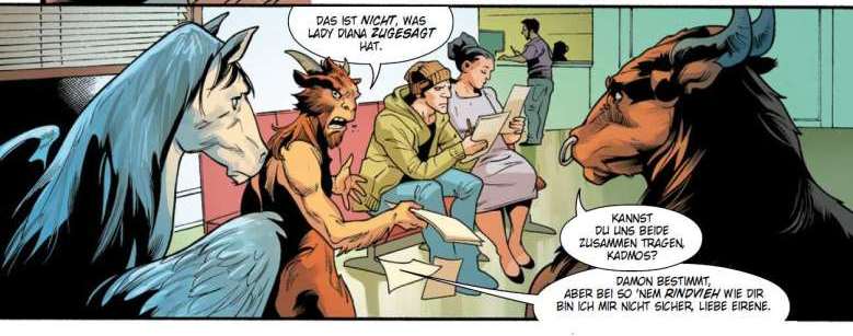 Pegasus, Pan und der Minotaurus sitzen ebenso überfordert bei den US-behörden herum wie die Beamten, die mit diesen seltsamen Exilanten etwas anfangen sollen. Sprechende Tiere beziehungsweise Fabelwesen sind ja schon schräg genug, aber wenn die nun auch noch eine Green Card brauchen, kann die Administration schon mal ratlos sein.