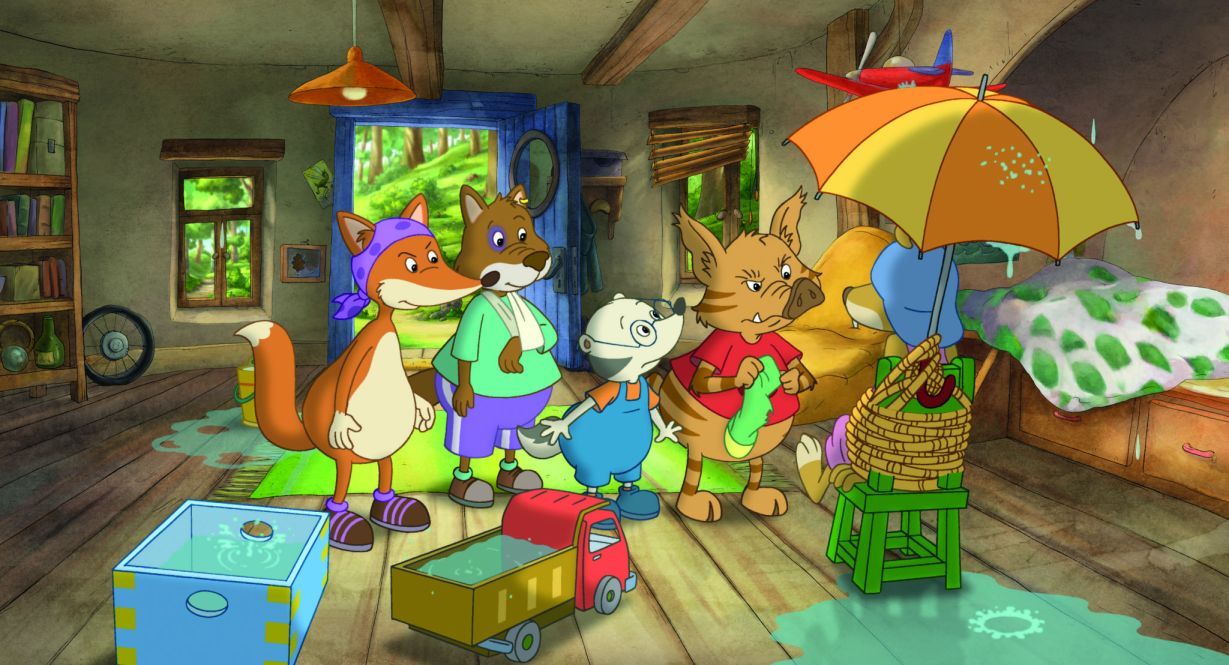 Doch als Socke beim Kämpfen den Damm beschädigt, der den See am Überlaufen hindert, braucht es schon professionelle Hilfe. Socke geht los, um die Biber zu suchen, während Stulle das Wildschwein aufpassen soll, dass nichts überläuft und vor allem soll er Mutter Dachs nichts erzählen.