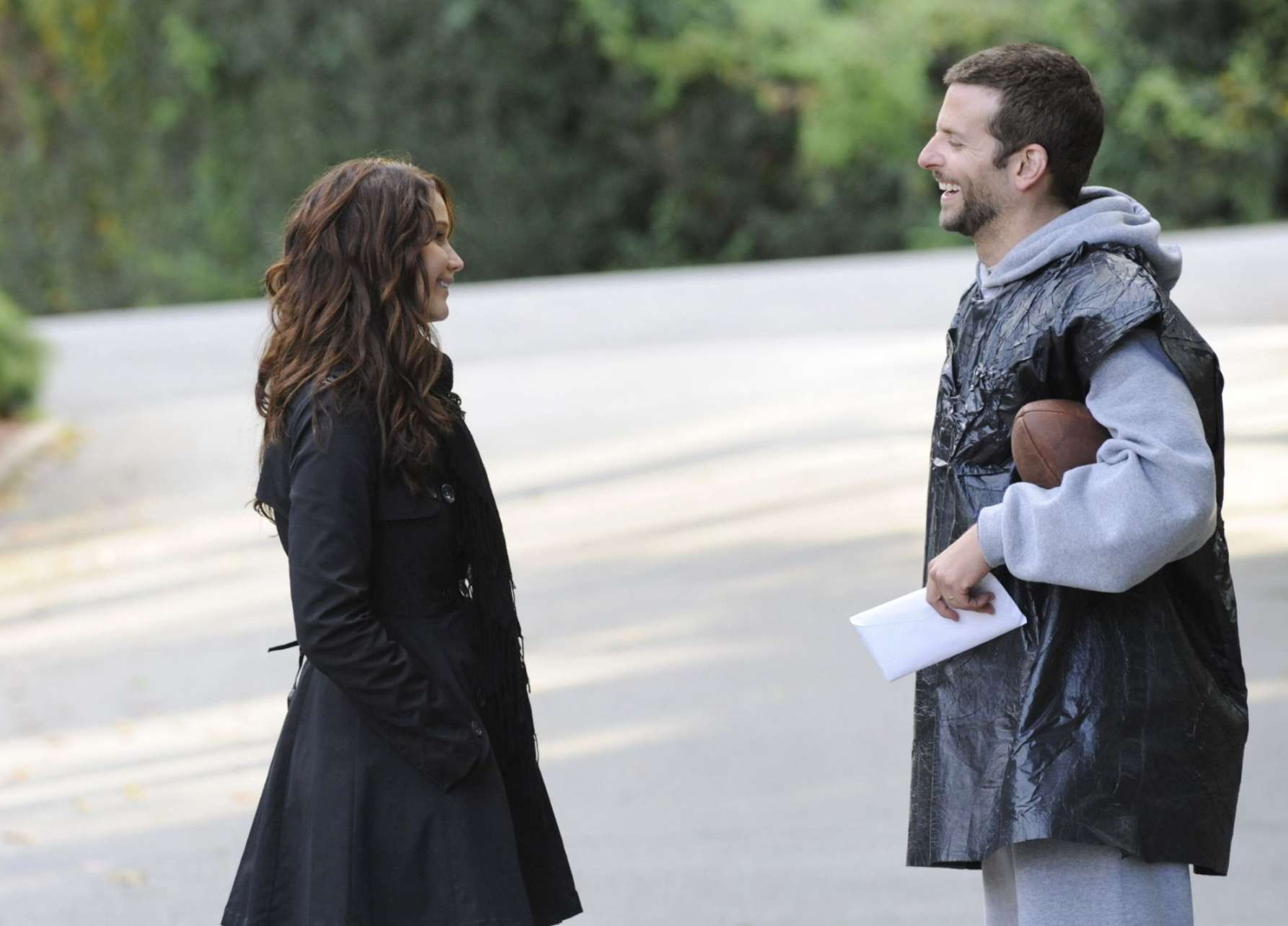 Im Original heißt der Film „Silver Lining Playbook“. Auf die Nennung des Playbook, welches im American Football das Buch der Spielzüge einer Mannschaft bezeichnet, also das Allerheiligste, hat man in der deutschen Fassung verzichtet, so bleiben die „Silberstreifen“, die „Silver Linings“ die man konsequenter Weise auch hätte übersetzen können. Aber das nur am Rande, denn es schmälert den Filmgenuss nicht.