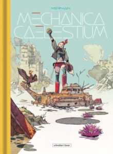 Merwans zeigt hier endlich, dass er nicht nur Illustrator kann, sondern auch als Szenarist ein pfiffiger Erzähler ist. Da fehlt in der „Mechanica“ auch keine Liebesgeschichte. Auf Deutsch sind einige seiner Werke erhältlich. Unter anderem erscheint bei Reprodukt die zusammen mit Bastian Vivés („Nationalfeiertag“) realisierte Serie „“Für das Imperium“ und bei Schreiber & Leser „Der marokkanische Frühling“, der von Defrance, Nuri, Beduel und Merwan inszeniert wurde.