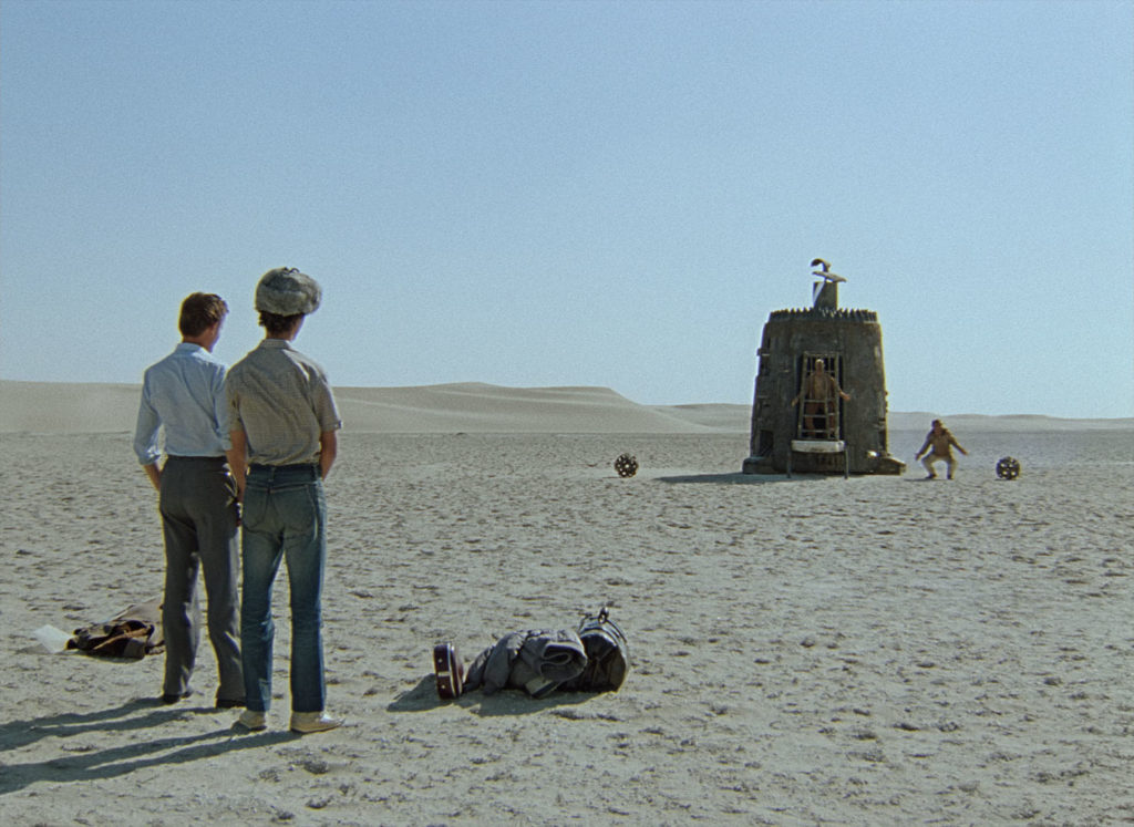 So kommt nicht nur eine Generation, die mit dem Kalten Krieg aufgewachsen ist, in den Genuss einer absurden Sci-Fi-Komödie aus der UdSSR, sondern auch junge Menschen, die eventuell gar keinen Bezugsrahmen für diesen hinreißend eigenwilligen „Wüstenplaneten“ haben. Zur Beruhigung sei gesagt, dass „Kin-dza-dza!“ als Komödie großartig gealtert ist und ohne jedes Hintergrundwissen aus sich selbst heraus funktioniert und sehenswert ist. Nun kommt der Film in restaurierter Form ins Kino und sucht sein Publikum. Obwohl „Kin-dza-dza“ von 1986 ist, lief der Film nicht in der ehemaligen DDR und erlebt erst jetzt seine Deutschlandpremiere. Warum das so ist, darüber mag jeder selbst Vermutungen anstellen.