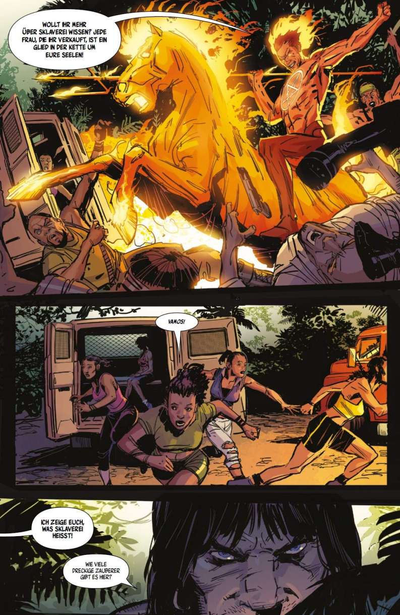 Der Rest der Geschichte ist dann optisch nicht ganz so herausragend. Es hat nicht nur bei Marvel durchaus Methode, eine neue Serie zunächst mit einem namhaften Star-Zeichner zu beginnen, der dann abgelöst wird, nachdem die Serie etabliert ist. Zeichner Patch Zircher („Hulk, „Venom“, „Iron Man“) und Kolorist Tartaglia (diverse Star Wars Comics) wissen auch zu gefallen, aber ihre Umsetzung der Geschichte ist eher konventionell und sorgt selten für dies Aha-Momente, in denen man als Leser tatsächlich wahrnimmt, wie cool eine bestimmte Zeichnung ausgefallen ist. Und dennoch: Am Artwork gibt es nichts auszusetzen. Es bleibt spannend, wohin die Reise der „Savage Avengers“ noch führt.