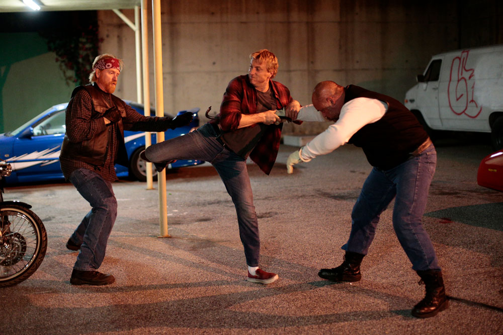 Auf der anderen Seite kommt der Alte Johnny Lawrence zwar abgehalftert, aber auch gereift rüber. Tatsächlich will er Miguel helfen, sich zu wehren und übernimmt damit eigentlich den Platz von Mister Myagi, der seinerzeit Danny geholfen hat. Dass Johnny dabei auf Methoden zurückgreift, die ihm früher selbst geholfen haben, ist mehr als nachvollziehbar. Dabei weiß der neue Sensei um den Wert einer zweiten Chance und versucht das Schlechte aus der „Cobra Kai“ Kampfhaltung herauszubekommen. Selbstredend gipfelt alles in einem Kampf beim All Valley Turnier.