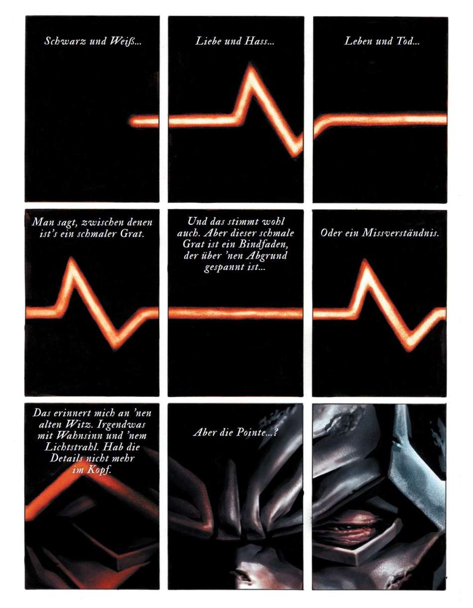 Batman kommt in einem abgehalfterten Hotel zu sich, erinnert sich nur langsam, was passiert ist und wie er dorthin gekommen ist. Batman erinnert sich an einen Kampf auf einer Brücke, einen Sturz. Doch Erinnerung verschwimmt und mischt sich mit Kindheitsträumen, mit unbewussten Schnipseln, die an die Oberfläche der Wahrnehmung treiben. Und dann taucht da dieser Gedanke auf: Der Joker tot?