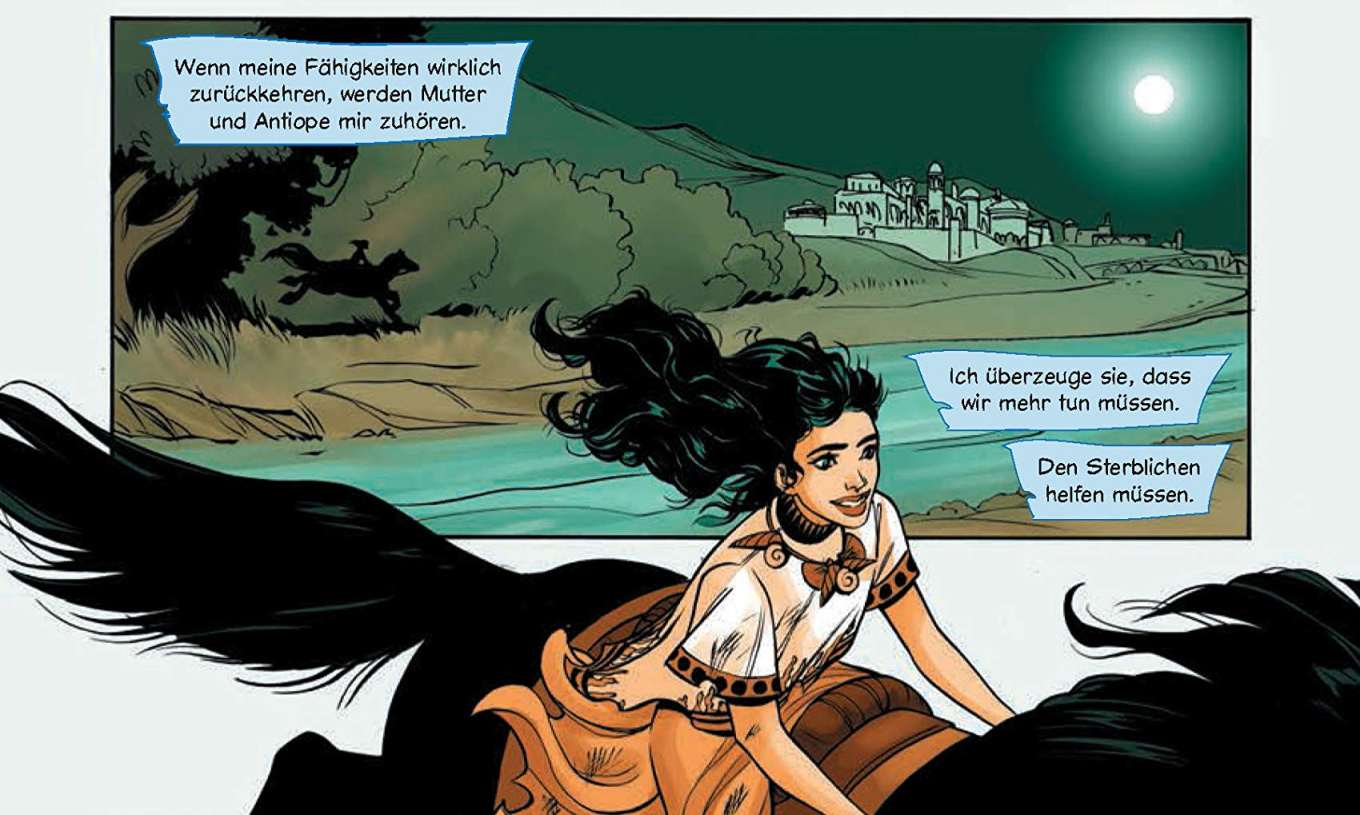 Mit der Verpflichtung der Bestseller-Jugendbuchautorin Laurie Halse Anderson ist DC Comics ein Coup gelungen. Die Autorin, die 1999 mit „Speak“ („deutsch „Sprich“, bei Reihe Hanser“) bewies, dass auch ernsthaftere Themen in Jugendbüchern ihren Platz haben, modernisiert die „Wonder Woman“ Origin-Story mit ein paar Film-Zitaten, Anlehnungen an die tatsächliche Entstehungsgeschichte der Heldin, so sie denn in der Comic-Historie fixiert ist, und mit Aktualisierungen, die auf jüngere Entwicklungen der globalen Menschheitsgeschichte Bezug nehmen.