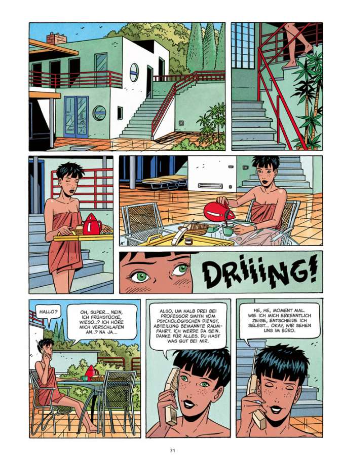 In Deutschland wurden die Alben um Caroline Baldwin bei dem Verlag Comic Plus bis zum zwölften Abenteuer aufgelegt. Der Serienauftakt hieß seinerzeit „Astronaut am Abgrund“ in dem neuen Sammelband bei Schreiber & Leser heißt die Geschichte wieder „Moon River“, da sie sich nicht nur auf die Reise zum Mond, sondern auch auf den Song bezieht. Und wie eingangs erwähnt, dauert es einige Seiten, bis Caroline Baldwin den Fall übernimmt, damals noch als angestellte Privatdetektivin.