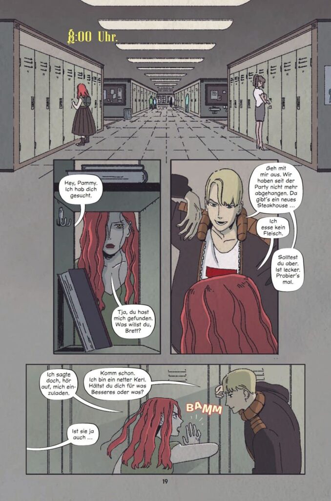 Gerade im maskulinen Rollenbild schlägt da Balz-und Imponiergehabe schnell in Übergriffigkeit und Mobbing um. So auch in Pamelas Fall, weil sie die Annäherung eines Mitschülers nicht erwidert. Hier knüpft dann nicht nur die Solidarität eines anderen Mädchens an, sondern zeigt vielleicht auch andere Wege auf. Für Pamela nicht nur ein Lichtblick im Schulalltag, sondern auch eine Freundin, die ihr in der belastenden Situation zuhause beistehen kann.