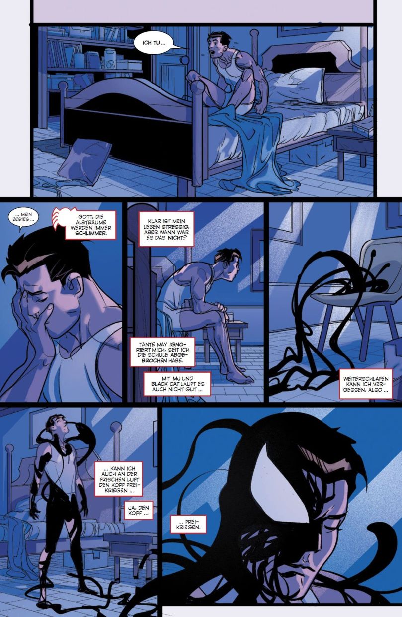 Normalerweise schlägt sich Eddie Brook mit dem außerirdischen Symbionten „Venom“ herum. Aber ursprünglich hatte Spider-Man den außerirdischen Symbionten als neues Kostüm mit auf die Erde gebracht, nicht ahnend, dass der Stoff lebt. Autor Chip Zdarsky entwirft eine Alternativ-Welt-Geschcihte, in der Peter Parker das schwarze Kostüm behält und begeistert mit einer typischen und wendungsreichen „Was-wäre-wenn-Geschichte um den beliebten Wandkrabbler. Panini veröffentlicht die ganze Story nun im Sammelband.