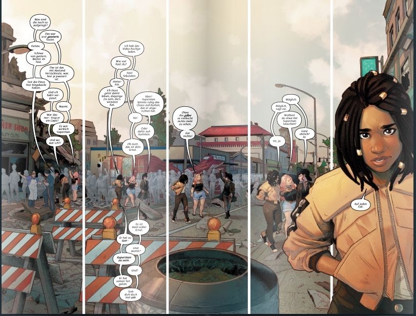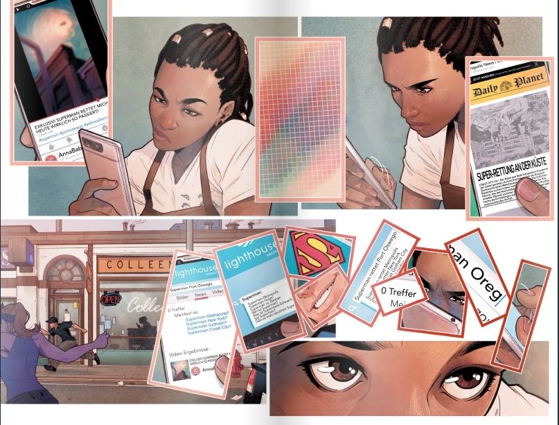 Selbstredend erfordert eine herausragende neue Geschichte auch eine eigenständige herausragende Optik und Jamal Campbell sorgt dafür, dass „Naomi“ modern sympathisch und eigenständig rüberkommt. Dazu ist das Paneling sehr offen, der Lesefluss geht oft gleich über eine Doppelseite und wirkt damit quasi leinwandgroß. Außerdem sorgt die alleinige künstlerische Kontrolle dafür, dass Konturen und Farbgebung perfekt zusammenspielen.