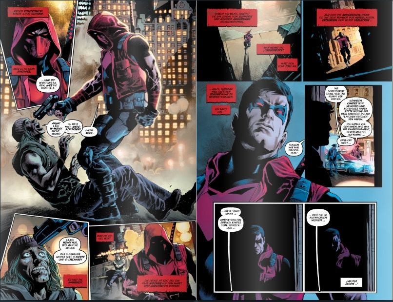 Die Story stammt von Starautor Chip Zdarsky („Fantastic Four“) und besticht mit ihrer psychologischen Dimension. In Rückblenden wird Jasons Anfangszeit als „neuer“ Robin erinnert und selbstredend gibt es auch jede Menge handfeste Action.