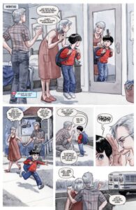 In „Superman – Rot und Blau“ sind etliche namhafte Comic-Künstler:innen vertreten, Beispielsweise G.Willow Wilson („Ms. Marvel“, „Wonder Woman“), Mark Waid („Daredevil“), Tom King („Strange Adventures“), James Stokoe, oder Jason Howard. Aber tatsächlich sind deren Beiträge nicht immer die auffälligsten und/ oder gelungensten.