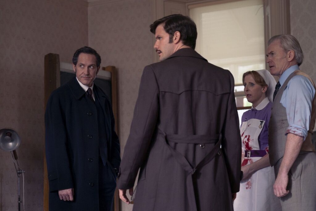 Dalgliesh trifft hier erstmals auf seinen neuen Assistenten DS (Detective Sergeant) Masterson (Jeremy Irvine) und düpiert diesen gleich mit einem Rüffel aufmerksamer zu arbeiten. Denn Masterson ist ein junger Mann, der es nicht immer so genau nimmt und mehr Augen für die Krankenschwestern hat als für die Indizien und den Tatort.