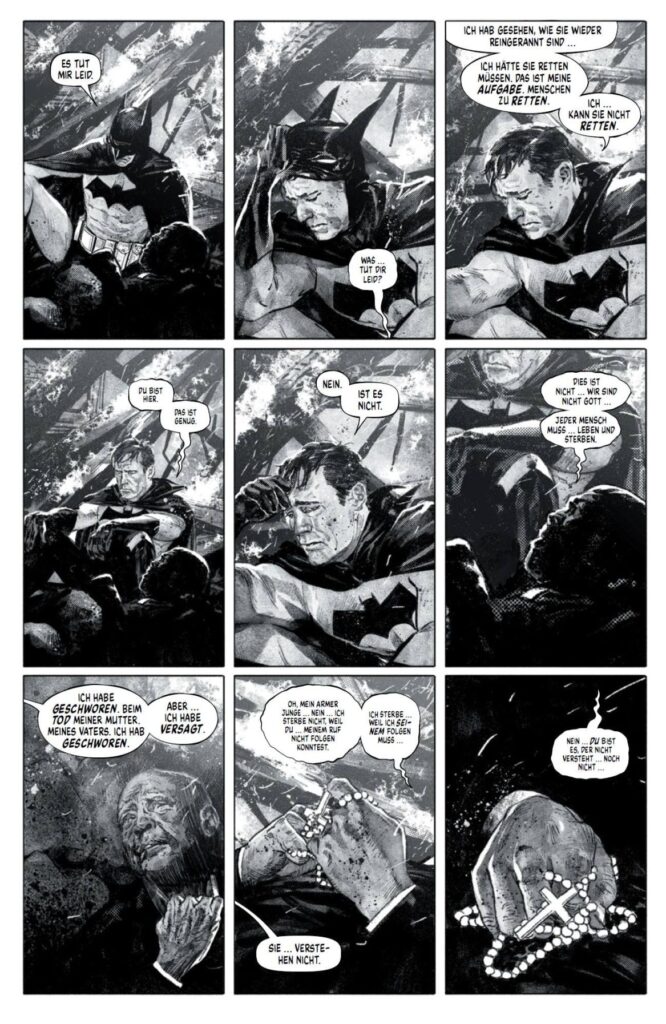 Ich bin versucht zu sagen, dass jedes Panel in „Batman: Schwarz und Weiß“ in der aktuellen Kurzgeschichtensammlung meisterhaft ist. Das wäre übertrieben, aber das Prinzip ist klar: „Batman“ setzt in Sachen Kurzgeschichte und Artwork mal wieder Maßstäbe. Das Niveau der Stories bleibt in seiner durchgehend großartigen und bisweilen atemberaubenden Ausführung unerreicht und verweist die Superheldenkonkurrenz deutlich in die Schranken. Der Verzicht auf Farben fördert eine grafische Vielfalt und Detailfülle an den Tag, die einfach nur Klasse ist.