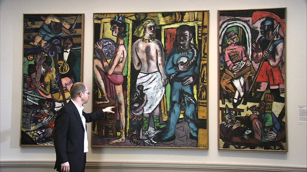 Der Künstler Max Beckmann ist rastlos, zieht häufig um und schafft sich dabei seine eigene Szene. Von Berlin über Frankfurt, Paris und Amsterdam, wo er während der Nazijahre lebt, in die USA. Dort ist er zunächst in St. Louis ansässig, später als Dozent in New York.