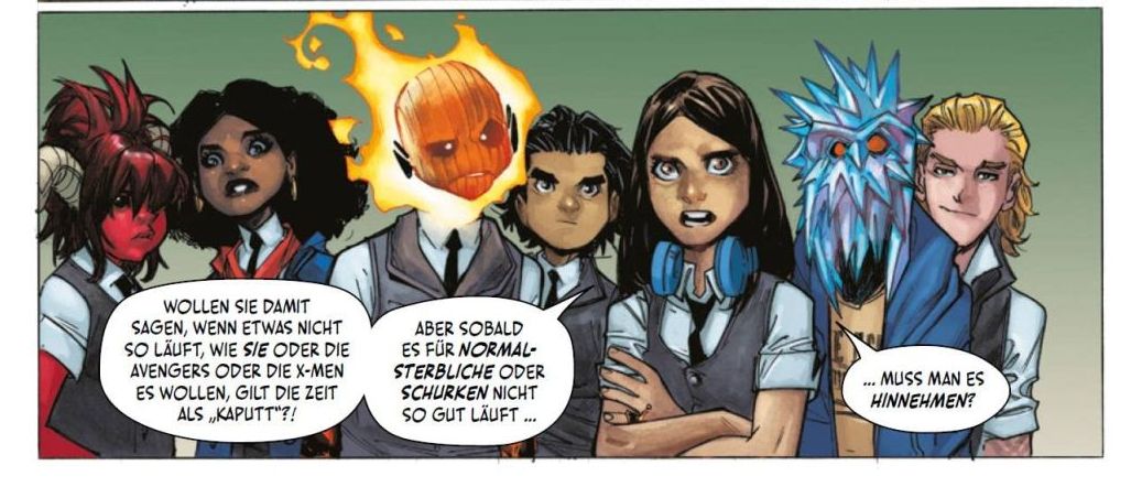 Auch in diesem Storybogen ist Skottie Young auf der Höhe seiner Kreativität und sorgt für großartige Action. Das ist immer ein bisschen „Harry Potter“ im Marvel Style, aber diese mal eben auch „Rock’n“Roll Highschool“ mit dem Ramones. Die Mischung stimmt, die Charaktere entwickeln sich immer weiter und es macht auch für gestanden Comic-Leser immer wieder Freunde, die Rasselbande bei ihren Abenteuern zu begleiten.