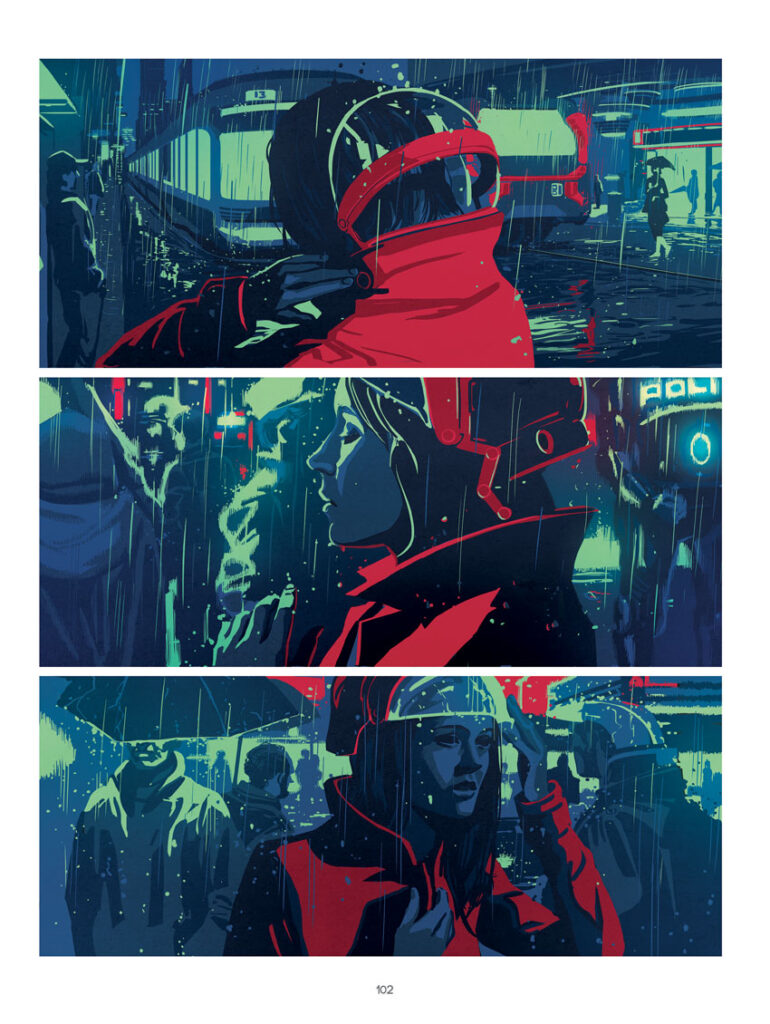 Der französische Comic-Künstler Jaouen Salaün hat sich mit seinen Science-Fiction-Szenarien einen Namen gemacht. Obwohl auch „Asphalt Blues“ in einem futuristischen Setting stattfindet, handelt es sich bei der Geschichte eher um ein Beziehungsdrama, das in einen Thriller eingewoben ist. Auf an die Westküste der USA in der nahen Zukunft.
