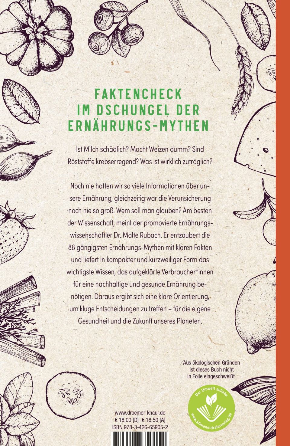 Es ist immer klug, bisweilen über den sprichwörtlichen Tellerrand zu schauen. Gelegentlich gelingt das mit dem buchstäblichen Blick auf den Teller. Ernährungsweisen und – Gewohnheiten gehören zu den alltäglichsten und prägendsten Erfahrungen, die Menschen machen können. Der Ernährungswissenschaftler Dr. Malte Rubach hat nun „88 Ernährungsmythen“ untersucht und auf ihren Wahrheits- und Informationsgehalt abgeklopft. Erschienen ist der Ratgeber in der „Menssana“–Reihe des Droemer Knaur Verlags.