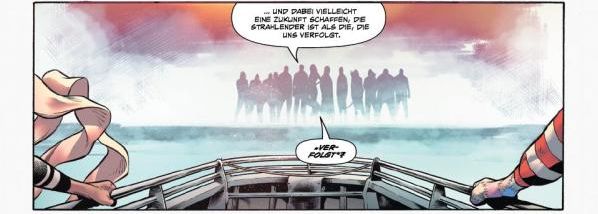 Derweil ist die aktuelle Truppe, in der unter anderem Shazam, Flash Wally West und Co die Erde beschützen ihren Teil, um für Ruhe und Ordnung zu sorgen. Unter den neuen sind einge Kandidaten mit großem Potential: Etwa der Gestaltwandler Tooby, das Strategie-As Matt, die superschnelle Alina, der Gorilla Gregg und das zusammengenähte Magische Wesen Stitch, das eine „non-binäre Person“ ist, die die Bezeichnung „genderqueerer Steppamerikaner“ vorzieht.