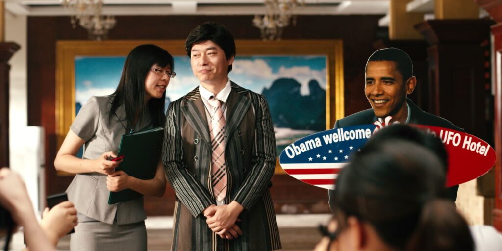 Dann rückt die Zukunft mit aller Macht und Skrupellosigkeit in das Rückständige Dorf ein: ein Milliardär will mit der UFO-Sichtung das große Geld verdienen und die Karpfenteiche müssen einem Hotelkomplex weichen. Mitten in den Modernisierungsmaßnahmen taucht dann auch noch der Tourist wieder auf, den Kwon Yun gerettet hat und voller Dankbarkeit, wird die große Freundschaft zwischen den USA und China im dörflichen Rahmen schon mal geprobt.