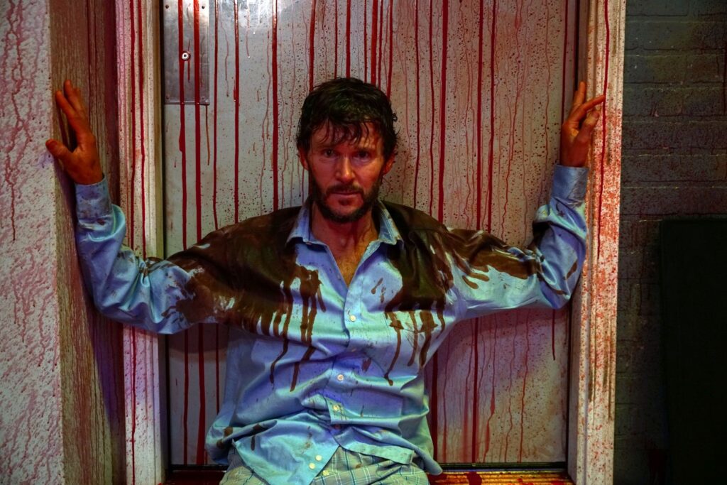 Zuvor allerdings hat Wes vergeblich versucht aus dem Toilettenhaus zu fliehen. So bestreitet er den rund 80 Minuten langen Film über weite Strecken darstellerisch allein. J.K. Simmons ist nur stimmlich anwesend und Wes‘ Frau oder Freundin Brenda (Silvia Grace Crim) erscheint nur in Form von Erinnerungen oder Phantasien.