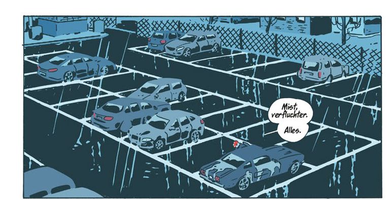 An dieser Stelle verweise ich auf die comic-Rezension von „November Teil 1“ und halte mich nicht lange mit Details der Handlung auf, denn die machen das Ganze gerade zum thrillermäßigen Lesevergnügen. Nur soviel Eigenzitat: „Im Prinzip ist „November“ eine klassischer Crime Noir Erzählung. Vieles bleibt rätselhaft, jeder ist zwielichtig und Gewalt ist ein probates Mittel der Problemlösung. Der erste Band von „November“ heißt „Die Frau auf dem Dach“ und beinhaltet die ersten acht Kapitel der Geschichte.“