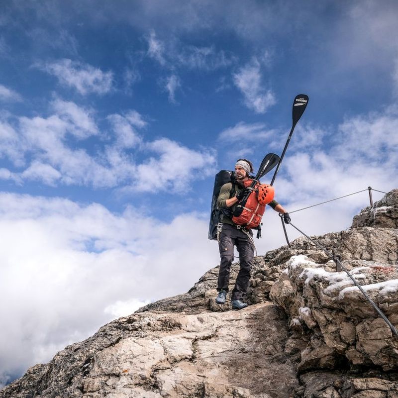 Und um die andere Perspektive, die sich vom Wasser aus bietet. Beim Start an der Zugspitze ist die Ausrüstung zunächst aber vor allem Ballast, der mitgeschleppt werden muss. Auch gestaltet sich der Weg anfangs nicht so paddel-tauglich wie angenommen und der Abenteurer muss viele Wege laufend bestreiten. Erzählt wird die Reise von Christo Foerster selbst und gefilmt wird von Filmmacher Kai Hattermann, der die Reise immer wieder für einige Tage begleitet. Und dennoch entsteht eine zusammenhängende Reiseerzählung, die auch für das Publikum einen Mehrwert bereithält.