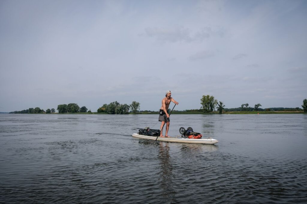 Und weil die Ausrüstung auch die ganze Zeit dabei ist, wird das Gewicht zu einem Faktor. Die Entscheidung für Wasserwege als maßgebliche Route ist nicht so weit hergeholt, schließlich haben haben Menschen jahrhundertelang Wasserstraßen zum Transport genutzt und dabei auch die Strömung genutzt. Diese Wege mit Stand-up Paddelboard zu befahren ist dann schon wieder abenteuerlicher. Aber darum geht es schließlich auch.